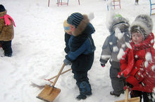 Прощание с зимой 13.03.2017 Дети помогают воспитателям убирать снег с игровых площадок.