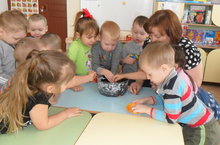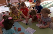 В группе "Солнышко" дети учились складывать из пластилина шарики, соединять все детали из пластилина в нужном порядке на свои места.