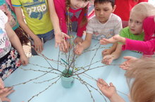 «Наблюдение за проклюнувшимися почками березы» 07.04.2016 Дети подготовительной группы каждый день наблюдают, что-то из природного уголка своей группы. На протяжении нескольких дней дети наблюдали за молодыми ветками берёзы, а сегодня наша берёзовая ветка показала первые листочки.
