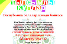 Третье место в конкурсе "Тылсымлы куллар!" 25.04.2016 Почётной грамотой за 3 место в конкурсе "Тылсымлы куллар!" в номинации "Тэмле булсын"! награждена семья Бикбовых. Ими была представлена кулинарная работа “Өчпочмак пешерү серләр”. Мы поздравляем эту замечательную и дружную семью за активное участие.