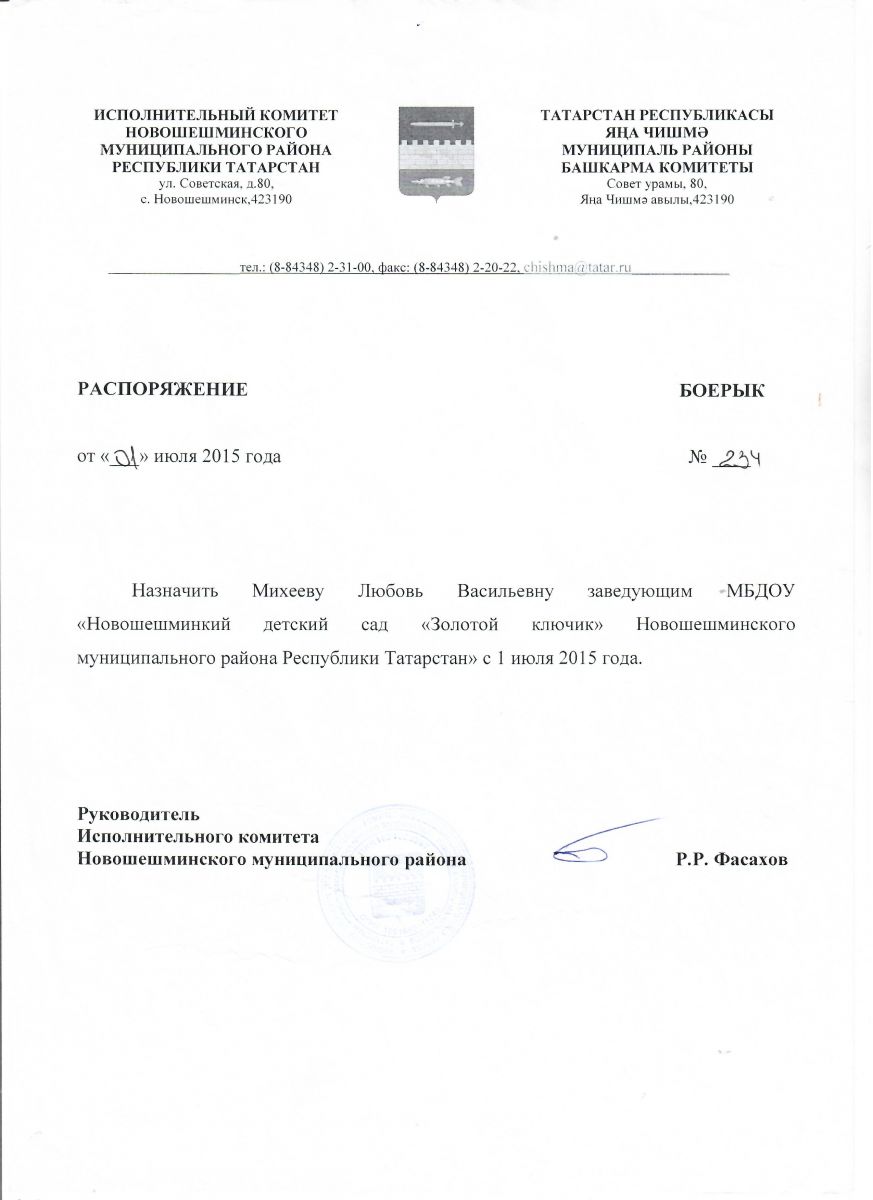 Короткое название: МБДОУ «Новошешминский детский сад «Золотой ключик» Новошешминского муниципального района РТ»