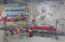 Центр детского творчества подготовил выставку-композицию из цветов для милых женщин. Всем безумно понравилось, сразу сложилась атмосфера праздничного настроения.