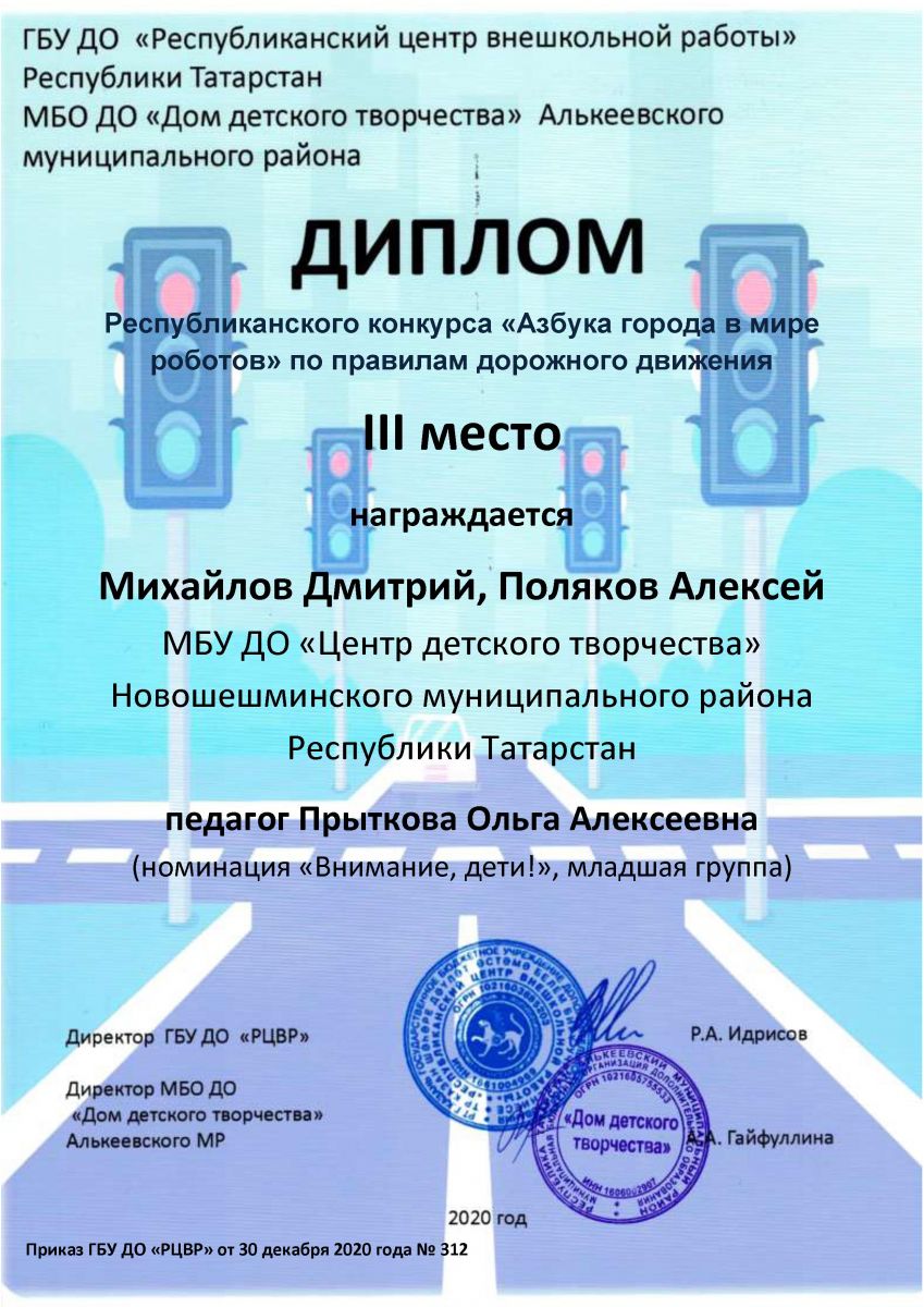20. Республиканский конкурс "Дорога БЕЗ Опасности" /upload/storage/org5288/files/Трунова Карина.pdf /upload/storage/org5288/files/Морозова Алина.pdf /upload/storage/org5288/files/Бурбурова Вероника.pdf /upload/storage/org5288/files/Михайлова Виктория.pdf /upload/storage/org5288/files/Михайлов Дмитрий.pdf /upload/storage/org5288/files/Васильев Марк.pdf