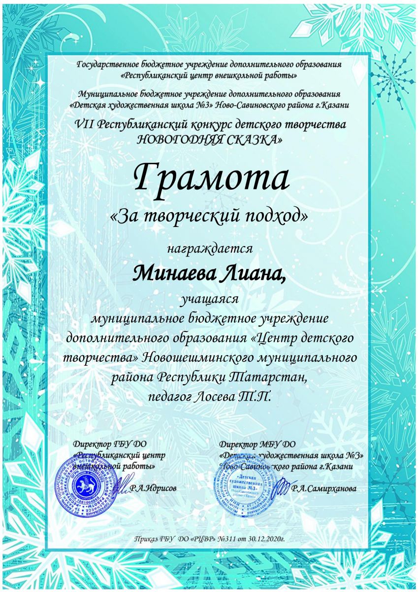 6. "Новогодняя сказка" Грамота за творческий подход /upload/storage/org5288/files/Номинация Декоративно-прикладные изделия Грамота - 0066.jpg