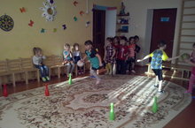 наш музыальный руководитель занимается с детками гимнастикой в форме ритмических движений