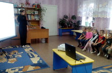 Мосяева Е.Н. провела инструктаж с ребятами старшей группы. Воспитатель объяснила детям как нужно себя вести на водных объектах в зимний период.