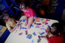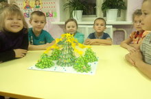 Цели данного занятия: Учить детей создавать изображение елки из картона и цветной бумаги. Закрепить умение вырезать мелкие детали для елочки (полоски).Формировать навыки коллективной работы. Развивать чувство цвета,композиции. В работе использовались следующие предметы:картон, цветная бумага, цветные бумажные салфетки.
