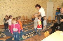 Музыкальный руководитель Немцов А.Н. сегодня совместно с воспитателем младшей группы Лашевой Л.В. провели музыкальное занятие. Ребята дружно изучили танец "Поворот".,а так же новые песенки на осеннюю тематику.