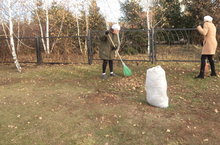 Коллектив Петропавловского детского сада "Солнышко" вышли убрать территорию детского сада.