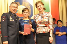 Минниханов Р.Н. вручил воспитателю старшей группы Мосявой Е.Н. удостоверение о поышении квалификации по ПДД.