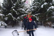Юнармейцы Петропавловской школы привели в порядок территорию памятника, так как в эти дни выпало много снега.Очистили дорожку от снега, подмели прилегающую территорию.Также очистили от снега территорию около церкви.