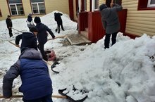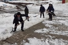 На школьной территории учащимися и работниками школы проводится расчистка снега, убирается мусор.Прилегающая территория к школе также содержится в чистоте. Начался двухмесячник по благоустройству школы и села- кропотливая и очень важная работа. Каждый это понимает и работает добросовестно.