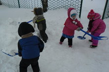 Дети учатся правильно пользоваться лопатками и очищают пространство от снега. У них развивается умение и желание оказывать посильную помощь товарищу, научить его тому, что умеет сам и делают они это с большим удовольствием.