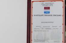 4 февраля на сходе граждан села Слобода Волчья, наш коллектив детского сада был награждён Благодарственным письмом Главы Новошешминского муниципального района Козловым В.М., за активное участие в общественной жизни села!