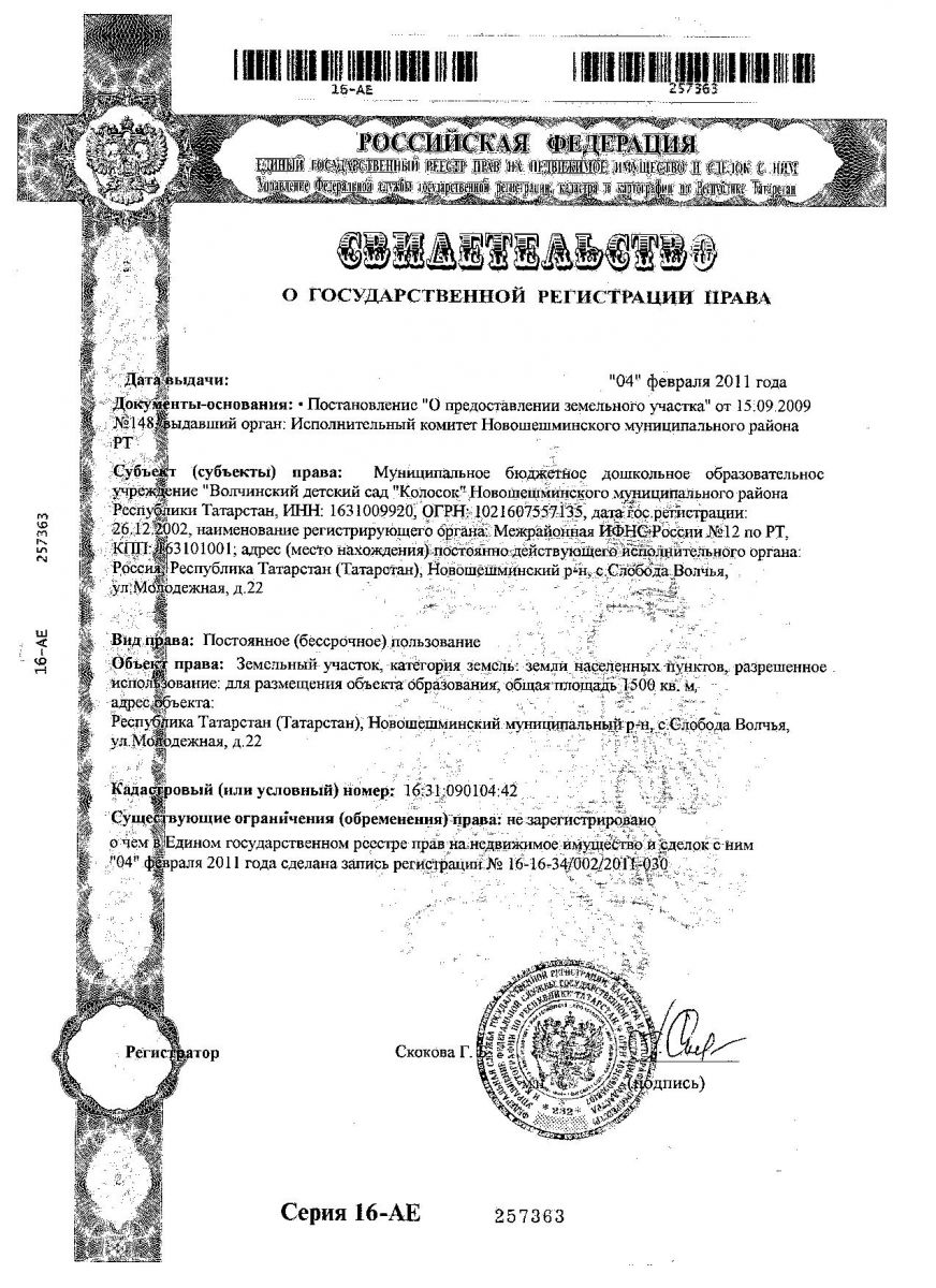 | Короткое название: | МБДОУ "Волчинский детский сад "Колосок" |