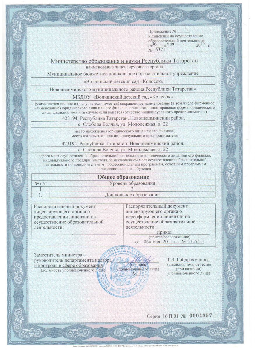 Муниципальное бюджетное дошкольное образовательное учреждение «Волчинский детский сад «Колосок» Новошешминского муниципального района РТ»