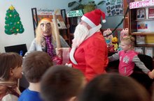 Сегодня в пришкольном лагере "Солнышко" прошли состязания по зимним видам спорта "Новогодняя эстафета" . Девчонки и мальчишки соревновались в сноуболе, самом быстром заезде на санках и тд. После все дружно отправились в школу, где все вместе занялись изготовлением снежинок и елочек. После обеда ребят пригласили в сельскую библиотеку, где гостей уже встретили Дед Мороз и Баба Яга. Конкурсы, хороводы, танцы - было все. Ребята остались довольны еще и сладостями из мешка Деда Мороза.