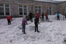 Сегодня в нашей школе прошел средник. Учащиеся и коллектив приступили к очистке территории школы от снега.