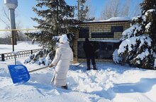 Активисты отряда профилактики правонарушений "Альтаир" в сопровождении руководителя отряда и ЗДВР очистили территорию памятника от наледи и снега.