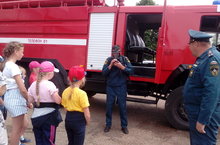 Учащиеся пришкольного лагеря побывали на экскурсии в пожарной части №124 Новошешминского района.Во время экскурсии, детям показали служебные помещения пожарной части, показали технику и пожарно-техническое вооружение.Ребятам показали предметы боевой одежды, пожарно-спасательный инвентарь.В ходе экскурсии детям напомнили о том, что спички - не игрушка, и что при неправильном обращении с огнем последствия могут быть очень серьезными.Посетив узел диспетчерской связи, детям напомнили о номере телефона вызова пожарной охраны, а также рассказали о правилах использования телефона - 01. Детям напомнили что экстренный телефон предназначен для того что бы помогать людям попавшим в беду, и что может случиться если его использовать для игры. Ребята с удовольствием фотографировались на фоне пожарной машины.