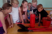 В пришкольном лагере "Солнышко" День пожарникови спасателей.