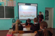 Сегодня в нашей школе прошли классные часы, посвященные Дню героев Отечества. Основная цель мероприятия – воспитание чувства патриотизма и уважения к героическим подвигам участников боевых действий. Праздник «День Героев Отечества» в нашей стране отмечается ежегодно 9 декабря. Он был утвержден Указом Президента РФ от 28 февраля 2007 года. Учащиеся с гордостью рассказывали о героях нашего Отечества. Читали стихи, посвящённые их славным подвигам. ... Минутой молчания почтили память героев, отдавших свою жизнь во имя спасения других жизней.