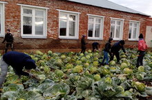 Сегодня школьники убирали урожай капусты, выращенный самими учащимися в течение лета. Урожай выдался на славу. Молодцы ребята!