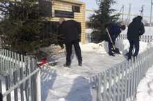 В рамках акции «Весенняя неделя добра - эстафета добрых дел "учащимися школы проведена уборка от снега территории памятника погибшим воинам в Великой Отечественной войне .