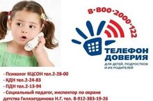ТЕЛЕФОН ДОВЕРИЯ для детей, подростков и их родителей 12.01.2022