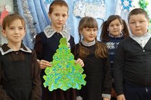 Учащиеся 3-4 клссов изготовили елочку, для оформления двери в детском саде "Улыбка"