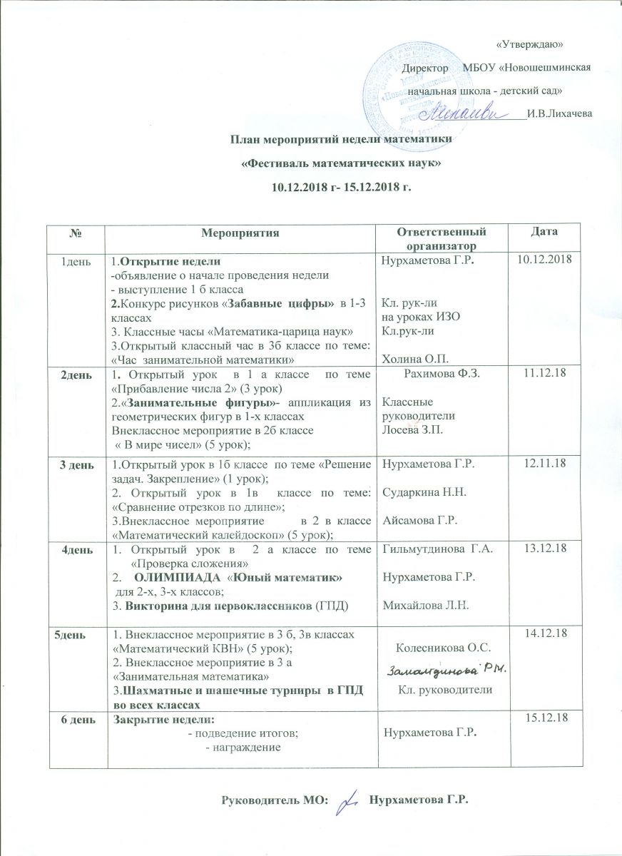 План работы недели математики здесь