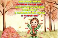 С 31 октября по 6 ноября - осенние каникулы школьников. Пусть каникулы пройдут в полной безопасности и с пользой для вас. Укрепляйте здоровье, занимайтесь спортом, читайте, не забывайте об уроках. 7 ноября - учебный день.