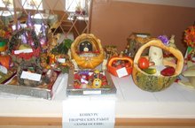 В нашей школе стало популярной традицией в конце октября, когда уже собран с полей и огородов богатый урожай овощей и фруктов, проводить конкурс - выставку поделок на тему "Дары осени".