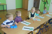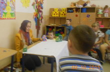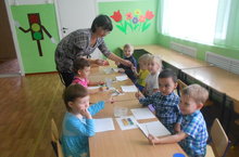 Сегодня было проведено занятие по художественно-эстетическому развитию - лепка. Целью данного занятия является: продолжать учить работать с пластилином, учить отщипывать от целого куска, раскатывать из пластилина ладошками круг, аккуратно укладывать готовое изделие на готовый шаблон "яблоко"; развивать интерес к лепке. Провела: Хайрутдинова Т.Н.