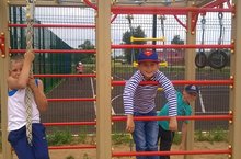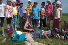 Сегодня ребята пришкольного лагеря "Радуга" играли на площадке около "Олимпа" в спортивные игры.