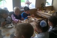 На занятии по рисованию в старшей группе с воспитанниками была проведена беседа об истории Великой Отечественной войны,традициями празднования Дня Победы, посмотрели выставку работ учащихся школы. Во второй половине занятия дети нарисовали свои рисунки.