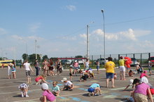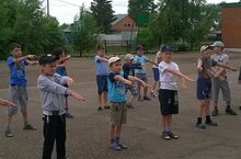 Ежедневно в пришкольном лагере "Радуга" ребята выполняют утреннюю зарядку на свежем воздухе.