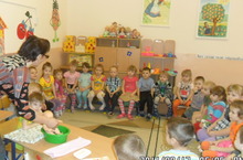 А в младшей группе, воспитательницей Хайрутдиновой Т.Н. было проведено оздоровительное занятие по теме «Про куклу». Она закрепляла знание режимных процессов, использовала сюрпризный момент (куклу), гимнастические упражнения под песню «Вышли на зарядку».