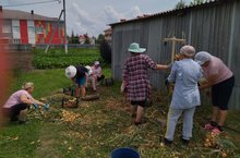 Лето близится к концу,а это значит ,что пора собирать урожай. Уборка лука на пришкольном участке школы-детского сада.