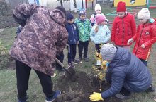 Сотрудники школы -детского сада,и учащиеся начальной школы приняи активное участие в посадке деревьев и многолетних растений!