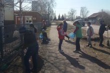 В рамках экологического двухмесячника весенние работы по уборке территории продолжаются. Сегодня убирали мусор, приводили клумбы в порядок, убирали прошлогоднюю сухую листву и подметали дорожки по территории школы-детского сада и по улице Солнечная.
