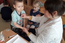 В нашем детском саду продолжает свою работу дежурная группа. Ежедневно дети проходят так называемый «утренний фильтр». У каждого ребенка с утра и несколько раз в течение дня измеряют температуру и осматривают горло. Такую же процедуру каждое утро-вечер проходит и весь педагогический состав дошкольных учреждений. Кроме того, каждые два часа проводится санитарная обработка – сотрудник моют полы, дверные ручки, другие поверхности с использованием дезинфицирующих средств. Администрация школы-детского сада строго контролирует работу дежурных групп.
