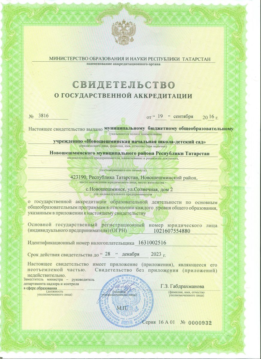 Адрес: 423190 РТ Новошешминский район,с.Новошешминск, ул. Солнечная, дом 2