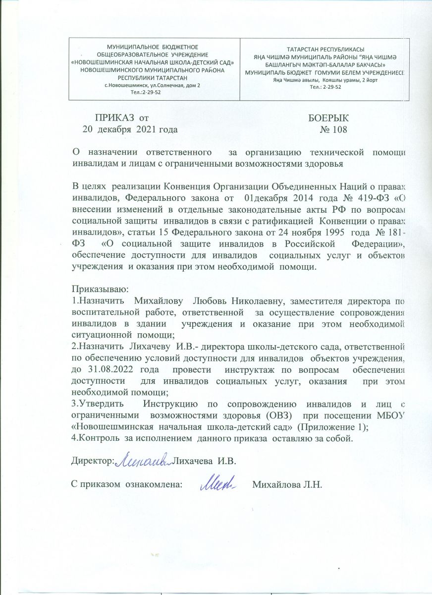 Приказ о назначении ответственного за организацию техничнеской помощи