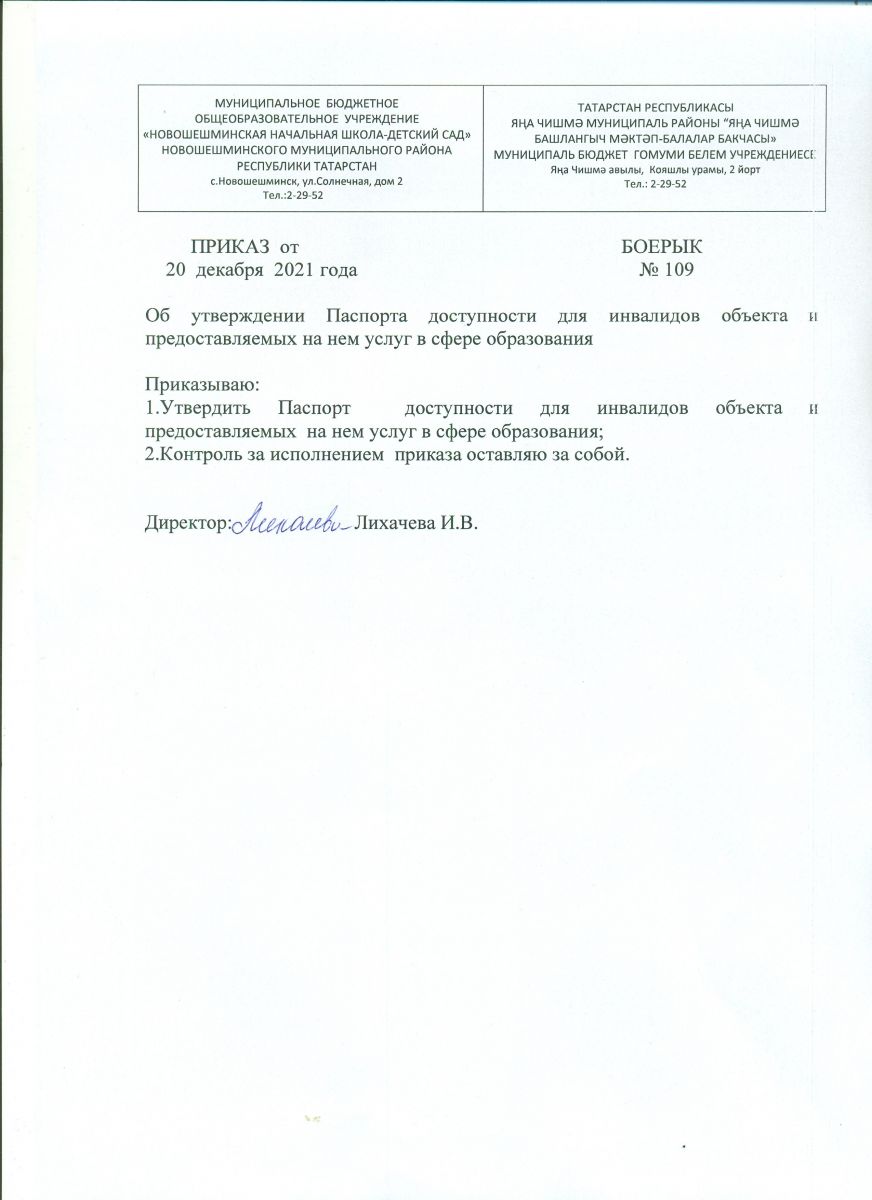 Приказ об утверждении Паспорта доступности