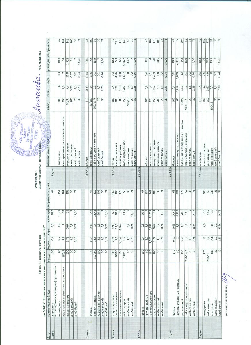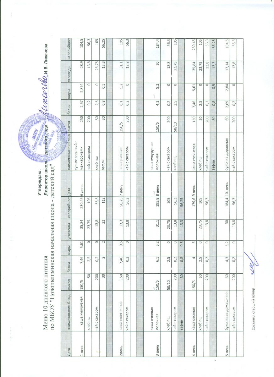 Горячее питание на 2021-2021 учебный год Меню на 12 дней Меню ГПД на 10 дней