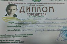 1 место на “Тукаевских чтениях” 20.04.2018 В целях привлечения учащихся к исследовательской работе, приобщения к духовным ценностям, традициям национальной культуры, выявления одаренных, талантливых детей МКУ «Управление образования Исполнительного комитета Заинского муниципального района» РТ 20 апреля 2018 года провёл IX региональную научно-практическую конференцию школьников «Тукаевские чтения». Для участия были приглашены обучающиеся 1-11 классов общеобразовательных организаций муниципальных районов Республики Татарстан. Для участия в Конференции учащаяся Ленинской СОШ Ахметова Гулюза отправила свою исследовательскую работу, выполненную под руководством учителя татарского языка Аглиевой Гульнур Хакимовны. Она прошла отборочный тур, приняла участие на очном туре и заняла 1 место. Поздравляем с победой!
