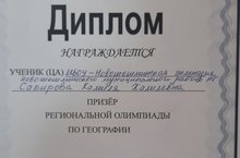 Призер Региональной олимпиады по географии 22.12.2020 25 ноября 2020 года на базе Набережночелнинского государственного педагогического университета прошла региональная олимпиада по географии с использованием дистанционных технологий. Честь нашего района защищала Сабирова Камиля, учащаяся 11 класса МБОУ "Новошешминская гимназия". По итогам участия в данной олимпиаде она стала призерам и награждена Дипломом. Подготовившаяся к олимпиаде учитель Рамазанова Г.И. была награждена Благодарственным письмом за подготовку призера. Поздравляем с победой и желаем дальнейших успехов!