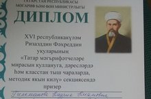XVI Республиканские педагогические чтения имени Р.Фахреддина 20.02.2020 20 февраля 2020 года на базе муниципального бюджетного образовательного учреждения «Гимназия №1 им.Р.Фахретдина» Альметьевского муниципального района Республики Татарстан прошел очный этап XVI Республиканских педагогических чтений имени Ризаэддина Фахреддина для педагогических работников общеобразовательных организаций Республики Татарстан, где приняла участие и заняла призовое место учитель татарского языка и литературы МБОУ «Шахмайкинская СОШ» Гильманова Кадрия Киямовна. Она награждена Дипломом МО и Н РТ.
