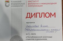 Республиканская олимпиада студентов и школьников, посвященная первопечатнику Ивану Фёдорову 12.11.2019 12 ноября 2019 года 9 учащихся МБОУ «Новошешминская гимназия» приняли участие на Республиканской олимпиаде студентов и школьников, посвященной первопечатнику Ивану Фёдорову, которая прошла в Казани и организаторами которой являются МО иН РТ, КФУ. По итогам олимпиады учащаяся 11 класса Любимова Полина (учитель Бутина Анна Ивановна) заняла 2 место и награждена дипломом и подарочным сертификатом на 2000 рублей, а остальным учащимся вручены сертификаты участников.